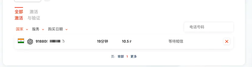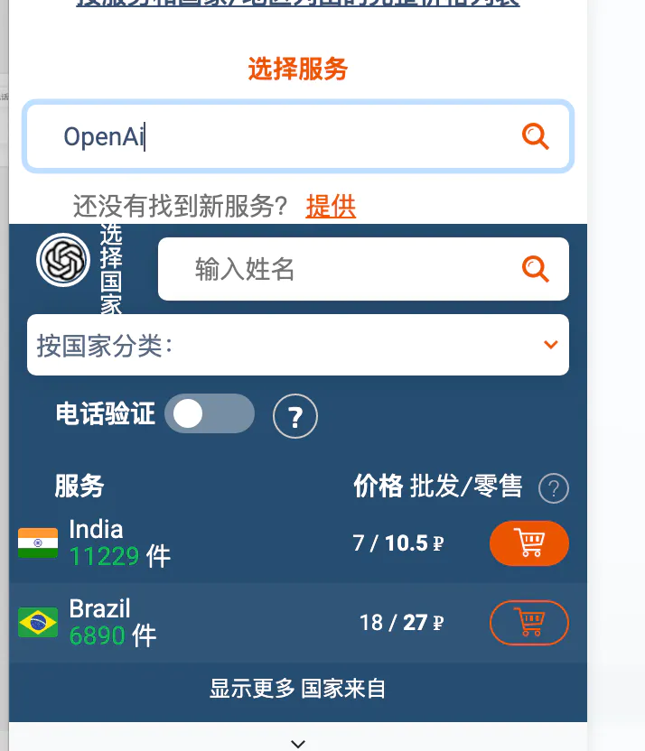 4.2 在接码网站的搜索栏中搜索”OpenAi”并选择印度作为地区。